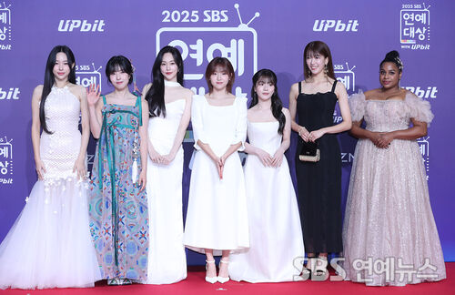 Han Cho-im, Jeong Ye-won, So Yu-mi, Kyoung Seo, Ben, Mashima Yu, and Elody hit the photo wall at SBS Prism Tower in Seoul on Dec. 30 for the 2025 SBS Entertainment Awards, trading their soccer uniforms for red-carpet-ready looks.