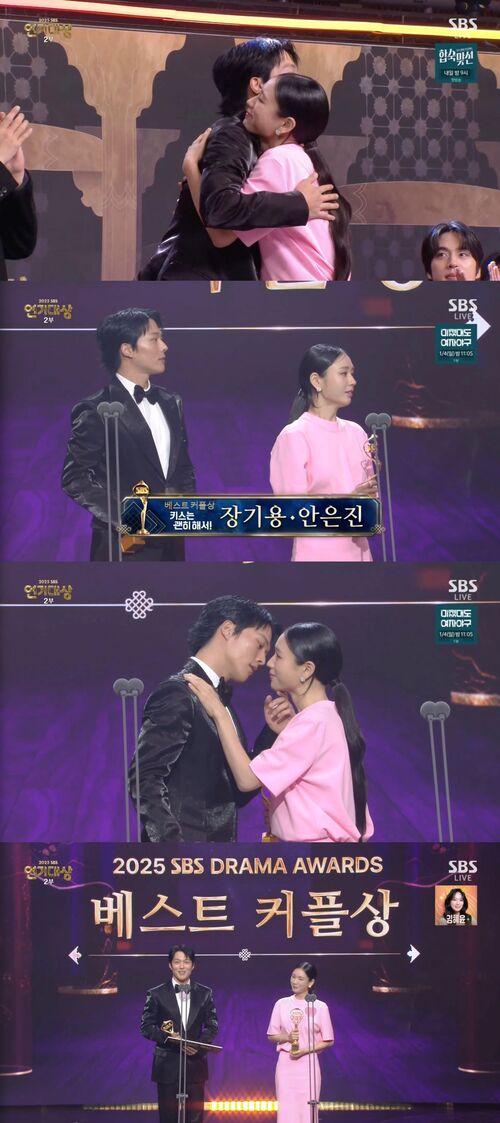 The 2025 SBS Drama Awards, broadcast live from SBS Prism Tower in Seoul’s Sangam district at 8:50 p.m. KST on Dec. 31, honored the leads of the series "Kiss for No Reason" with the fan-favorite trophy.