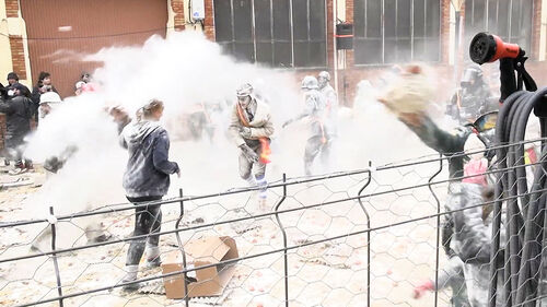 해마다 이맘때면 스페인 남동부 이비 마을에서 열리는 밀가루 싸움 축제, 엘센파리나츠 현장입니다.