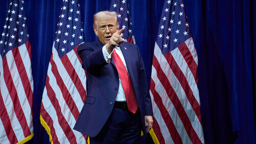 ▲ 지난 6일(현지 시간) 도널드 트럼프 미국 대통령이 워싱턴에서 공화당 하원의원들을 상대로 연설하면서 손가락으로 군중을 가리키고 있다.