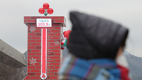 ▲ 12일 서울 종로구 광화문 광장에 설치된 사랑의 온도탑에 나눔 온도가 103.9도를 나타내고 있다.