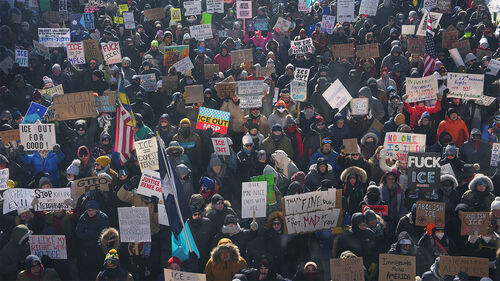 미 일간 뉴욕타임스(NYT) 등에 따르면 이날 미니애폴리스 시내 중심부인 '거번먼트 플라자' 광장에는 영하 20도의 혹한 속에도 약 1천 명의 시위대가 집결해 연방 당국을 규탄하고 프레티의 사망을 애도했습니다.