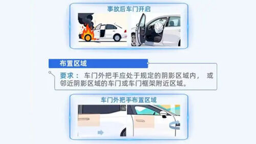 이번 규제로 테슬라 모델Y처럼 차체에 숨겨진 손잡이의 한쪽 면을 누르면 다른 쪽 손잡이가 튀어나오는 식, 니오 ES8처럼 전자식으로 튀어나오는 손잡이는 모두 금지됩니다.