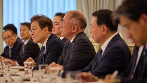 ▲ 이재명 대통령이 지난해 6월 13일 서울 용산 대통령실 청사에서 6경제단체·기업인 간담회를 하고 있다.