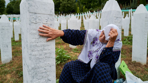 ▲ 보스니아 내전 당시 희생자를 추모하는 여성