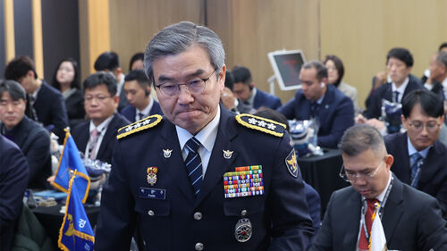 ▲ 5일 서울 서대문구 경찰청에서 열린 글로벌 공조 작전회의에서 박성주 국가수사본부장이 인사말을 위해 단상에 오르고 있다.