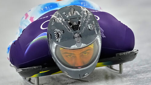 헤라스케비치는 어제(9일) 이탈리아 코르티나 슬라이딩 센터에서 전쟁의 희생자가 된 우크라이나 스포츠 선수들의 모습이 들어간 헬멧을 쓰고 연습 주행을 해 주목받았습니다.