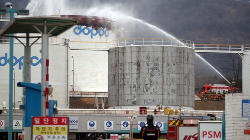 불은 옥외 유류 저장 탱크 덮개 역할을 하는 '콘루프' 위에서 시작된 것으로 전해졌습니다.