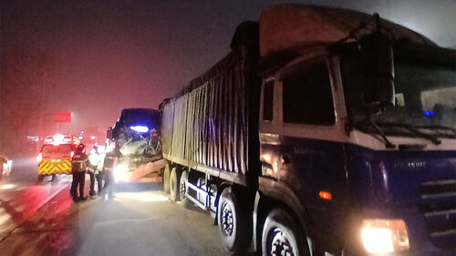 오늘(11일) 오전 6시 40분쯤 전북 군산시 소룡동의 한 도로에서 회사 통근버스가 신호 대기 중이던 25t 화물차를 들이받았습니다.