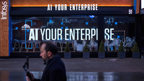 ▲ 한 남성이 AI 광고판 앞을 지나고 있다.