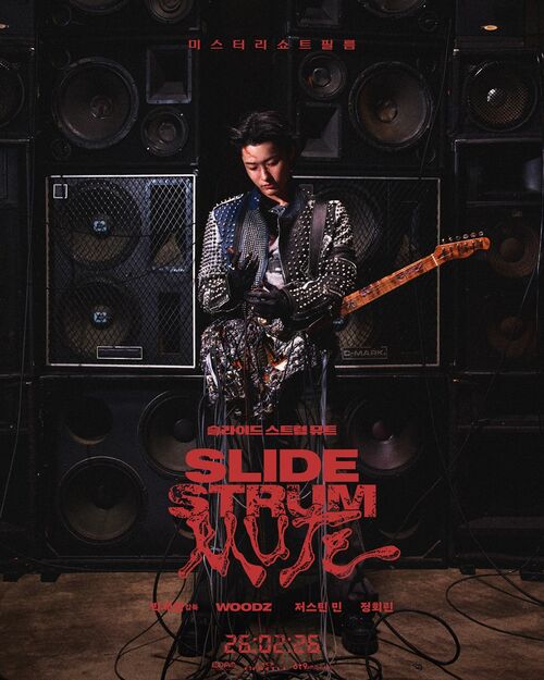“Slide Strum Mute” follows Woo-jin, who, on a night after failing an audition, plays a broken guitar handed to him by a mysterious man―and hurtles through a cursed timeline, pushed by desire.