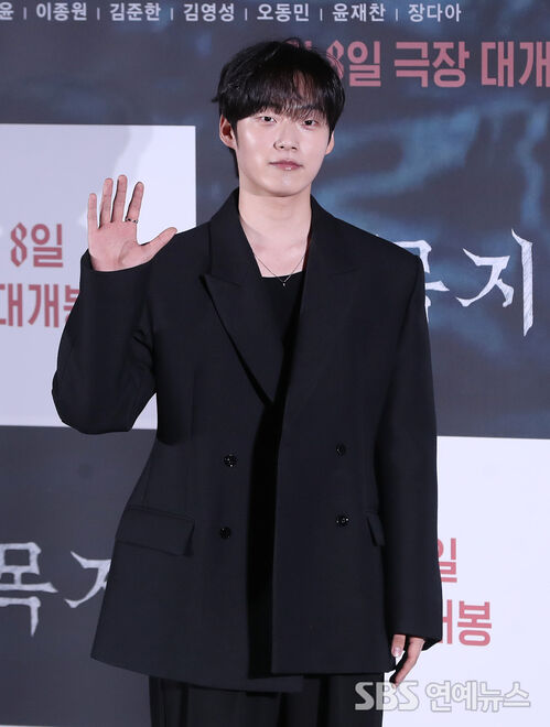 Yoon Jae Chan attended the production briefing for the film “Salmokji: Whispering Water” at CGV Yongsan I’Park Mall in Yongsan-gu, Seoul, on the morning of the 4th and posed for photos.