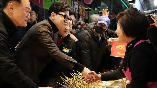▲ 한동훈 전 국민의힘 대표가 지난 7일 부산 북구 구포시장의 한 분식집을 찾아 상인들을 만나고 있다.