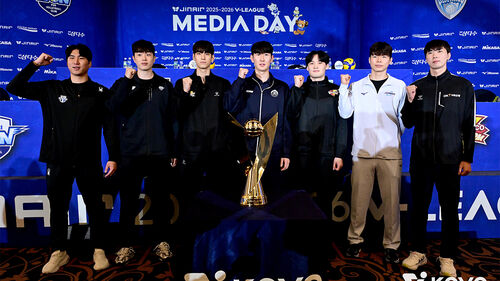 ▲ 프로배구 2025-2026 V리그 미디어데이에 참석한 남자 선수들