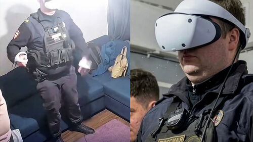 동료 경찰들이 체포 절차를 진행하는 사이 한 경찰이 VR 장비를 써 보고 잠시 리듬 게임을 해 본 거라고 하네요.