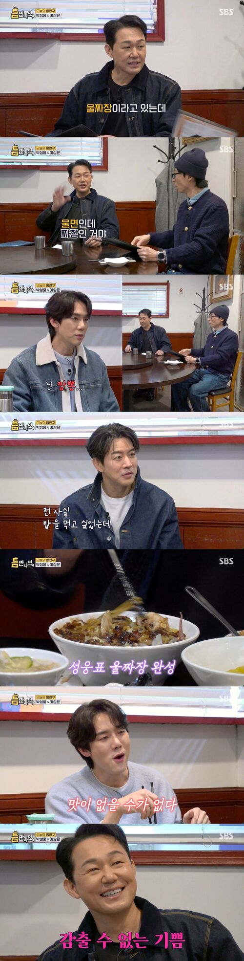 Yoo Yeon-seok tasted it first and praised it: “There’s no way this could be bad. It’s like extra-saucy jjajangmyeon.” Lee Sang-yoon then ditched his own order and dug straight into the uljjajang.