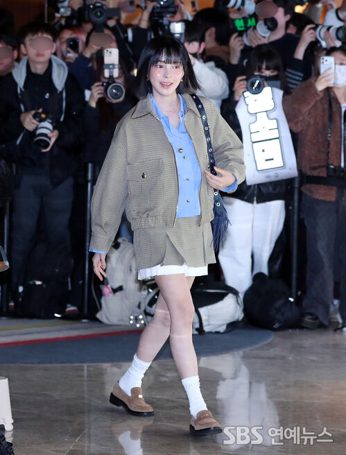 Shin Suhyun attends a fashion brand photo wall event at Mondrian Seoul Itaewon in Yongsan-gu, Seoul, on the morning of the 19th.