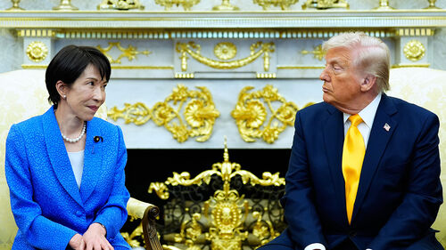 ▲ 트럼프 미국 대통령과 다카이치 일본 총리가 19일(현지시간) 미국 워싱턴 백악관 집무실에서 미일정상회담을 하고 있다.