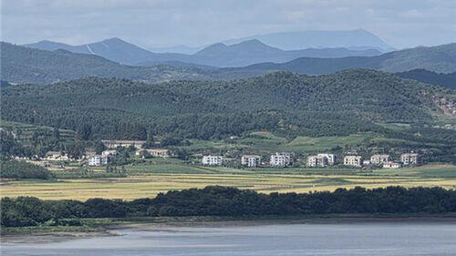 ▲ 오두산 통일전망대에서 바라본 북한 관산반도의 모습