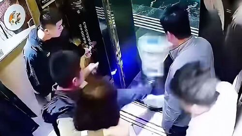 그런데 갑자기 한 남성이 엘리베이터에 들어서던 배달 로봇을 발로 걷어찹니다.