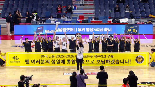 박지수의 맹활약과 주전들의 화끈한 외곽포를 앞세워 BNK를 대파하고 우승컵을 들어 올렸습니다.