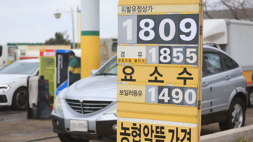 ▲ 지난 6일 오전 제주시 연삼로의 한 주유소 가격안내판이 휘발유 1천809원, 경유 1천855원, 등유 1천490원을 표시하고 있다.