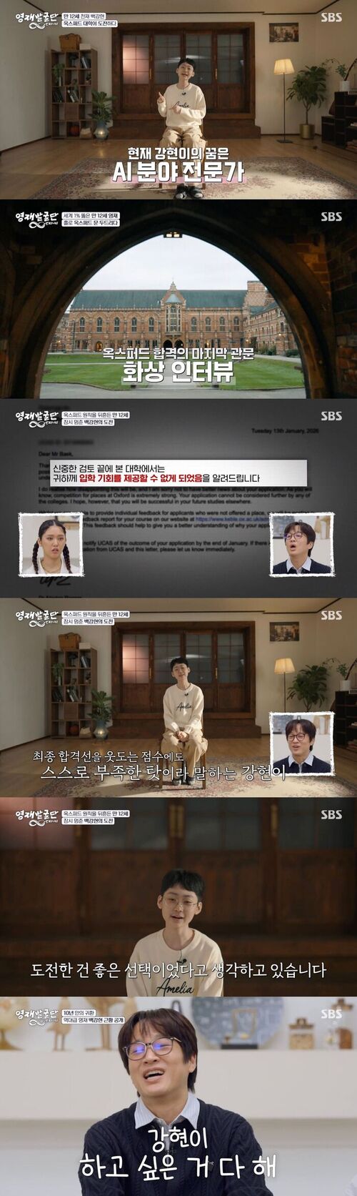 He also scored high on the MAT and went through three rounds of final interviews. Backed by strong praise from professors, Baek felt hopeful about an Oxford offer. However, the university ultimately did not admit him, leaving viewers disappointed.