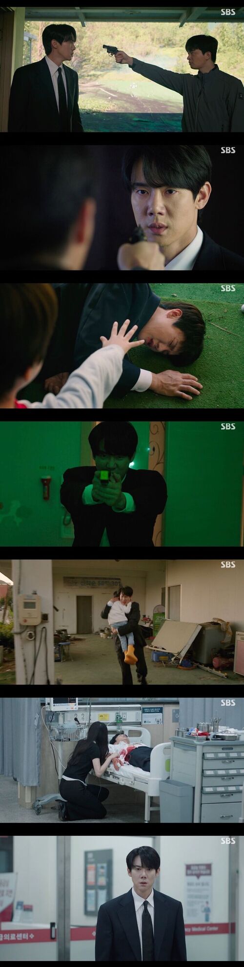 Shin I-rang headed to the hospital with the child. But he had taken a bullet to the abdomen. He collapsed.