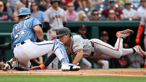 ▲ 현지시간 18일 2회말 경기에서 태그아웃 당하는 샌프란시스코 자이언츠의 이정후
