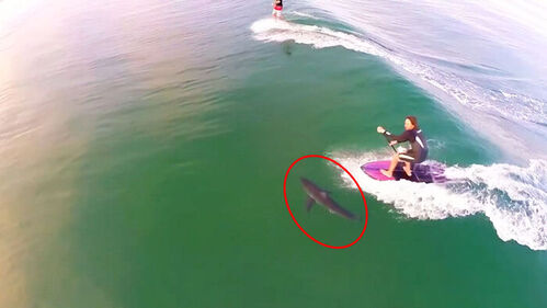 이 사실을 전혀 모른 채 보드를 타던 남성, 다행히 별다른 충돌이나 공격은 없었던 것으로 전해졌습니다.