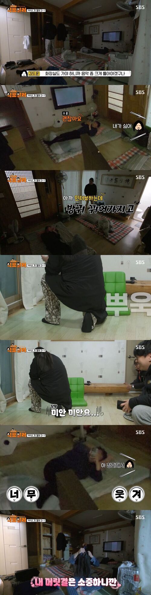 이날 방송에서 두 사람은 지리산 첫 촬영 하루 전 미리 모여 녹화를 준비했다. 씻기 전 김도윤은 "드라이기 때문에 시끄러울 텐데"라며 걱정을 했다.