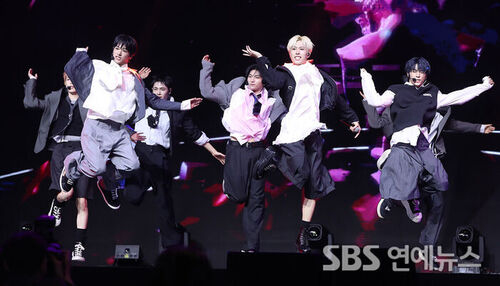The group NEXZ is performing on stage at the media showcase for the release of their 2nd single, 'Mmchk', held at Blue Square in Yongsan-gu, Seoul, on the afternoon of April 27.