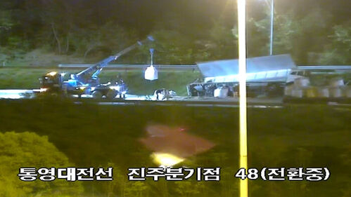 ▲ 진주 통영대전고속도서 25t 화물차 사고 현장
