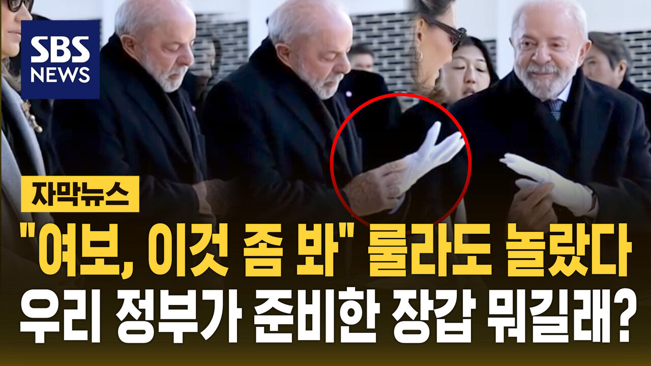 영상에는 방한 일정 도중 국립현충원을 방문한 룰라 대통령이 새끼손가락이 없는 하얀색 장갑에 놀라며 옆에 있던 아내에게 이걸 보여주는 장면이 담겨 있습니다.