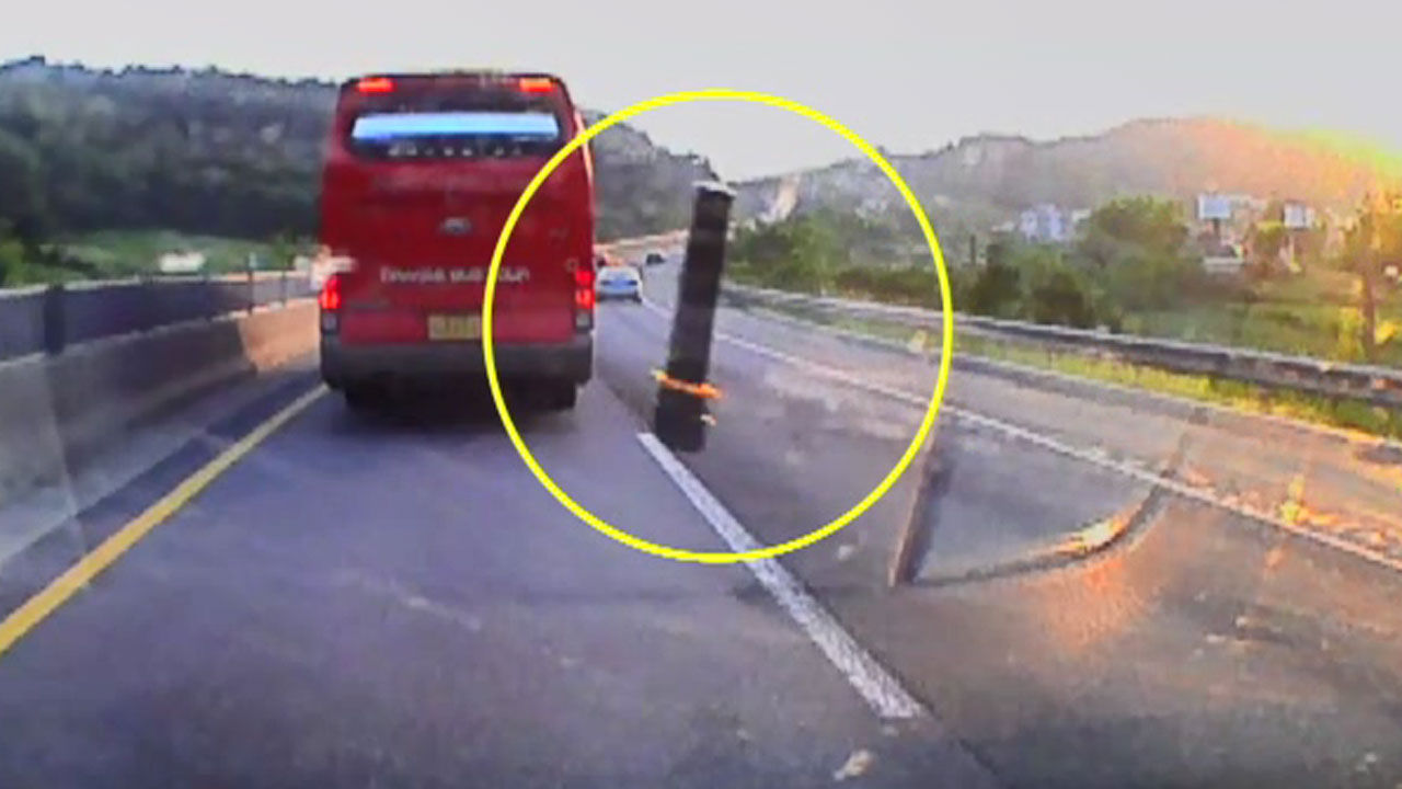 중앙분리대 너머에서 갑자기 날아든 쇳덩어리에 꼼짝없이 당했습니다.