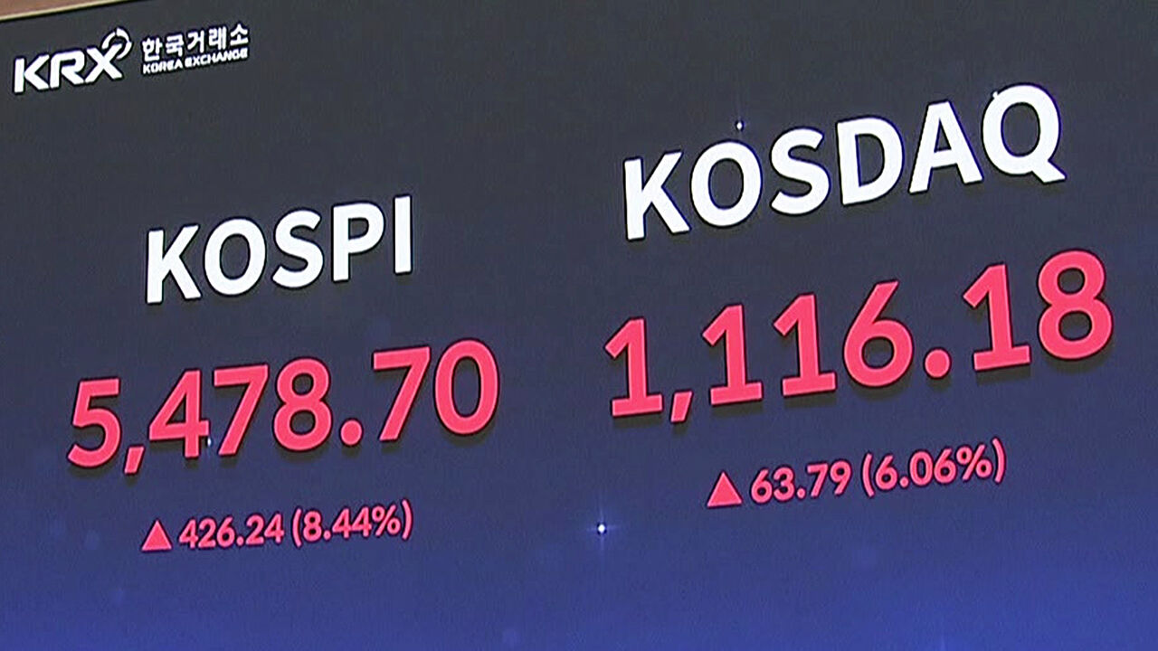 코스피는 8.4% 급등한 5천478에 장을 마치며 5거래일 만에 상승세로 돌아섰습니다.