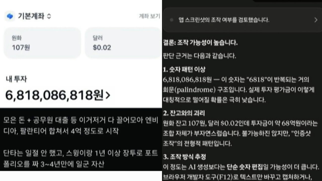 전문가들은 최근 가짜 계좌 앱이나 정교한 이미지 편집을 이용한 수익 인증 사례가 늘고 있다면서 이런 조작된 성공담이 상대적 박탈감만 키우고 잘못된 투자 판단을 부추길 수 있다고 경고했습니다.