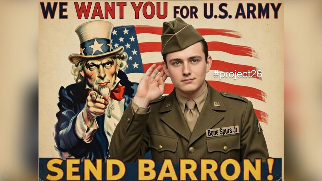 도널드 트럼프 미국 대통령의 막내아들인 배런 트럼프의 입대를 촉구하는 해시태그가 SNS에서 확산하고 있습니다.