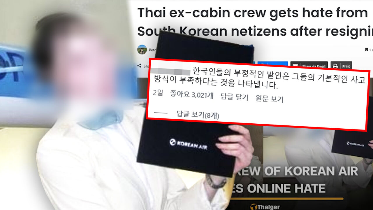 대한항공에서 근무했던 한 태국인 여성 승무원이 퇴직 소회를 밝히며 올린 소셜미디어 게시물에 한글로 외모를 비하하는 악성 댓글이 쏟아져 논란이 일고 있습니다.