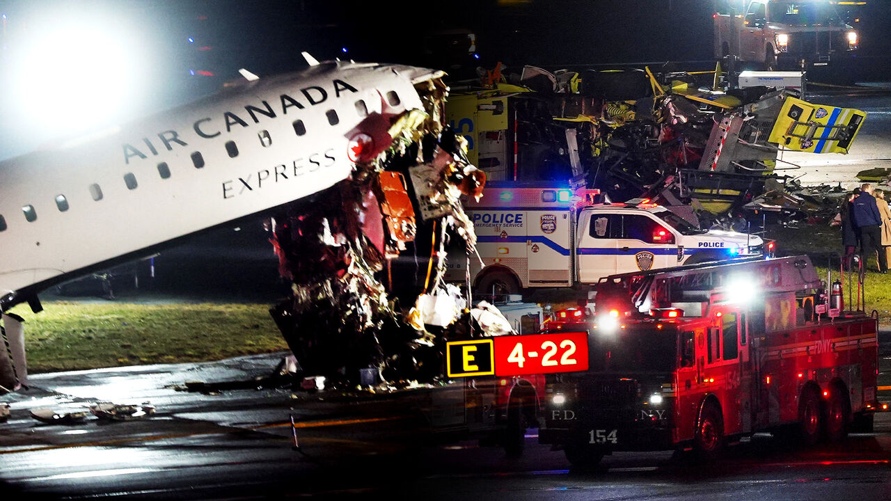 현지시간 22일 밤 미국 뉴욕 라과디아 공항에서 에어캐나다 익스프레스 여객기가 착륙 중 소방차와 충돌하는 사고가 발생해 공항 운영이 전면 중단됐습니다.