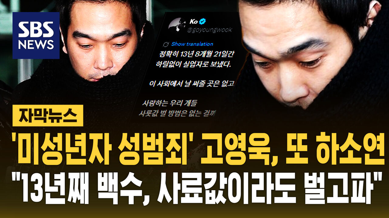 고영욱은 최근 자신의 SNS 계정에 "정확히 13년 8개월 21일간 하릴없이 실업자로 보냈다"며 "이 사회에서 날 써줄 곳은 없고 사랑하는 개들 사료값 벌 방법은 없는 걸까"라고 적었습니다.