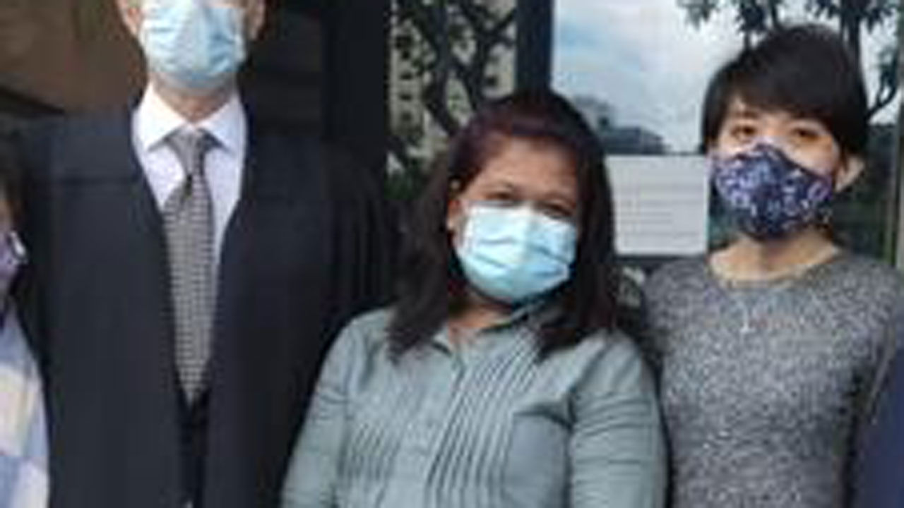 ▲ 4년간의 법정 투쟁 끝에 무죄가 선고된 리우문롱 회장의 가정부 파르티 리야니(가운데)