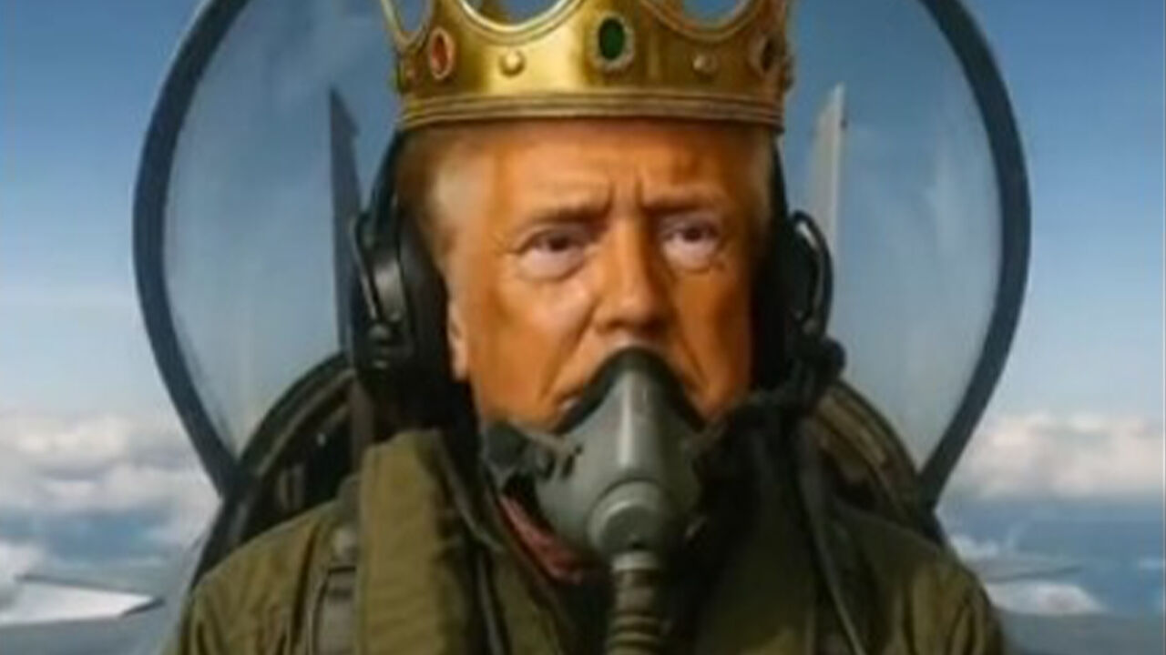 ▲ 왕관 쓰고 '킹 트럼프' 문구 새겨진 전폭기 탄 트럼프 밈 영상
