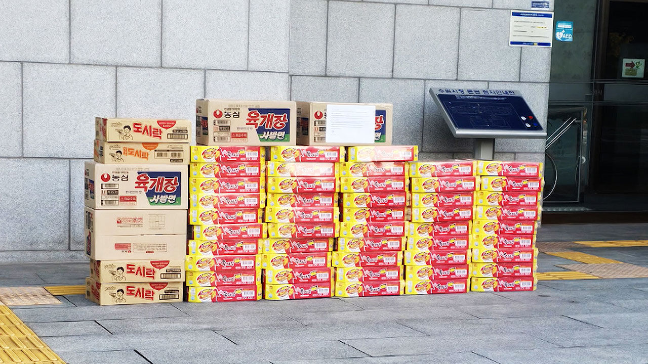 경기도 수원에서 익명의 기부자가 7년째 라면을 기부하고 있다는데요.