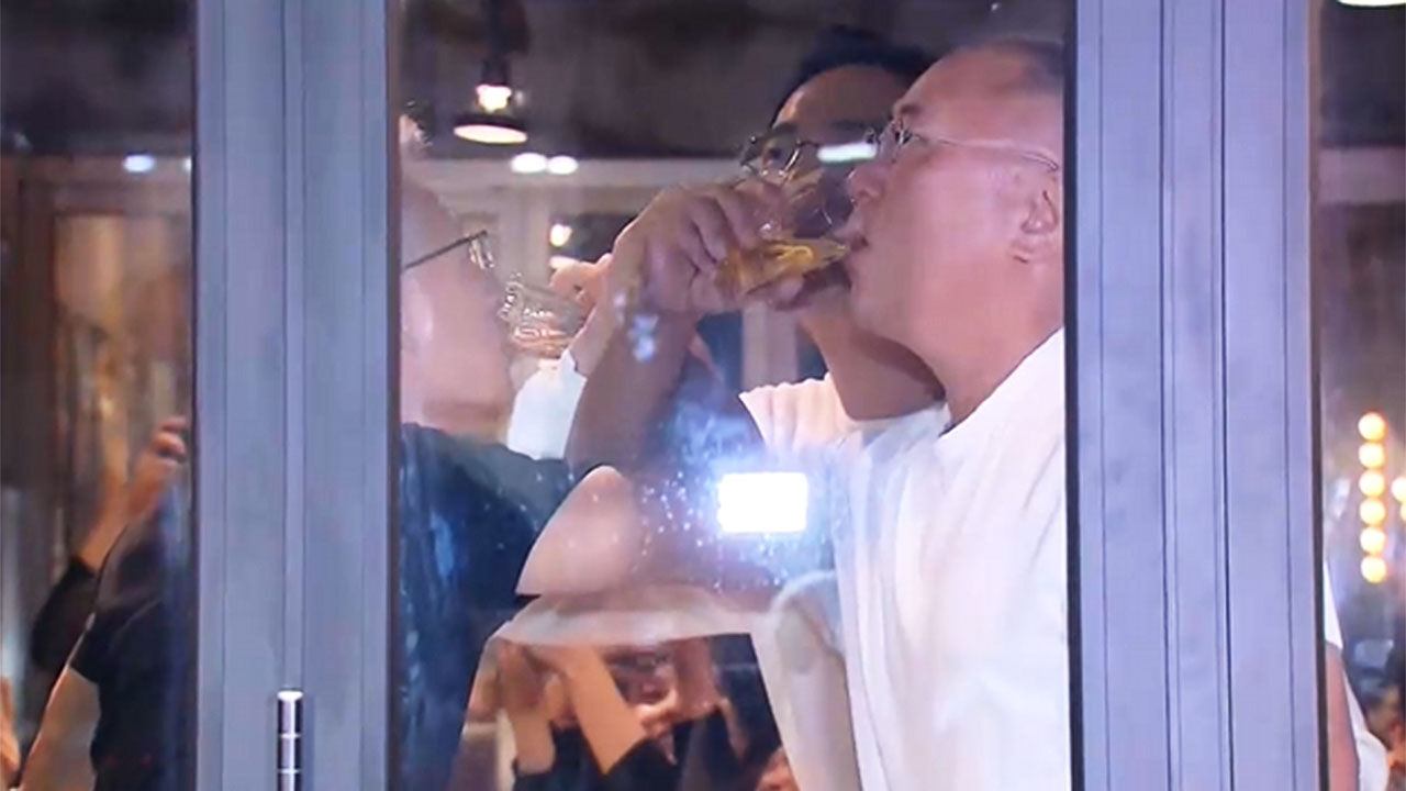 치킨을 먹으며 대화를 이어가던 중, 맥주에 소주를 섞은 '소맥 러브샷'까지 선보이자 환호성이 터져 나왔습니다.