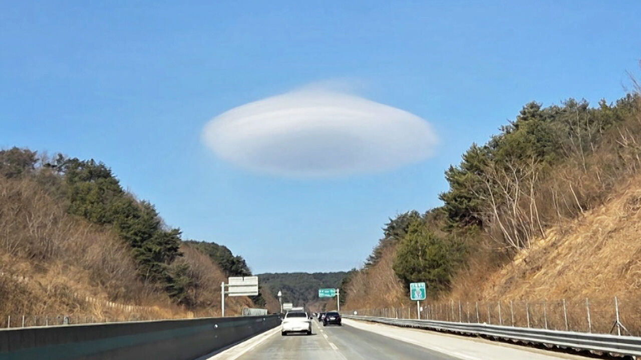 당시 하늘은 대체로 맑았지만 특정 지점에만 매끈하고 납작한 접시 모양의 구름이 떠서 눈길을 끌었습니다.