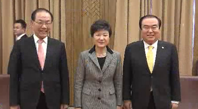 박근혜 대통령 당선인이 당선 이후 처음으로 여야 대표를 한 자리에서 만났습니다.