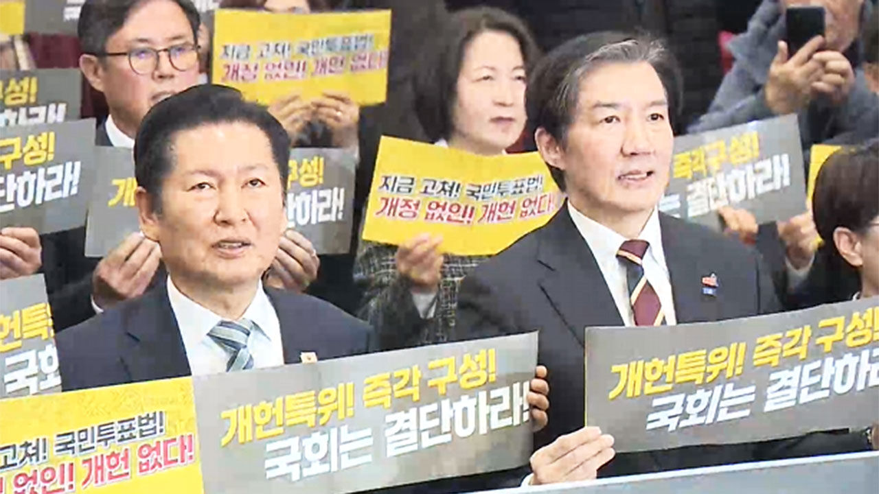 정청래 민주당 대표는 헌법의 힘으로 12·3 내란을 막을 수 있었다고 말했고 조국 혁신당 대표는 반드시 개헌을 완수하자고 강조했습니다.