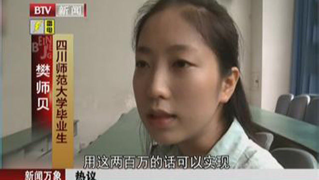 한 여대생이 인터넷에 올린 글이 중국 누리꾼들 사이에 대대적인 화제를 모았습니다. '사범대 여학생이 부모의 길러주신 은혜를 보답하기 위해 사회를 향해 2백만 위안을 빌리려한다'는 긴 제목의 짧은 글입니다.
