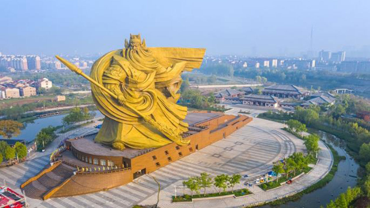 관우가 청룡언월도를 쥐고 있는 모습을 조각했는데 워낙 크다 보니 징저우시의 모든 풍경을 압도해 도시 미관을 해친다는 비난이 적지 않았습니다.
